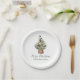 Add a festive and elegant touch to your holiday table with this beautiful Christmas paper plate featuring a hand-painted evergreen tree adorned with blush, champagne, green, and golden caramel-toned ornaments accented by soft white lights. The tree rests in a woven wicker basket at the top of the design, with “Merry Christmas” displayed below in green handwritten script and your family name shown underneath. Set against a white background, this design combines rustic farmhouse charm with timeless holiday style — perfect for Christmas dinners, parties, and festive gatherings.