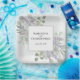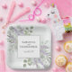 These elegant boho chic paper veut plate add a special touch to your reception, rehearsal dinner, or other wedding celebrations. They feature a hand painted watercolor design with your names and the wedding date inside a white frame on a marbled dusty blue background surrounded by a bounty of lavender flowers, eucalyptus leaves, and foliage. Rustic and beautiful these plates sure to please.