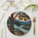 Assiettes En Carton Rustic mountain range landscape stain glass