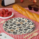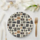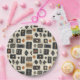 Earthy geometric pattern paper plate inspired by tribal mudcloth textiles, featuring hand-painted rectangles, diamonds, and triangles in charcoal black and terracotta on a textured beige background. A warm boho design ideal for rustic décor lovers, artisan style fans, and anyone drawn to earthy geometric aesthetics.