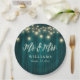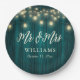 Plaques de papier mariage turquoise rustique personnalisées avec bois de grange et lampes à cordes. Personnalisez facilement ces plaques papier mariage turquoise avec vos détails mariages. Ces plaques en papier Mr et Mrs sont parfaites pour un pays rustique turquoise, ou pour une fête de mariage à la grange. Éléments correspondants disponibles.