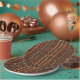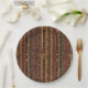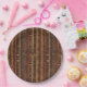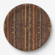 Warm geometric stripe pattern paper plate featuring tribal-inspired diamonds, zigzags, and textured vertical bands in earthy brown, terracotta, tan, beige, and charcoal tones. A cozy boho design ideal for southwestern décor lovers, rustic style fans, and anyone drawn to earthy, handcrafted aesthetics.