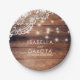 Créez vos propres plaques de papier Mariage Rustic Barn Wood Lace & String Lights.