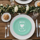 Plaques de fête en papier vert à la menthe avec monogramme mariage. Couleur personnalisable et personnalisez le nom lettres initiales de mariée et mariée. Élégante typographie dans le rustique style campagnard chic maçon design bocal. Design romantique avec icône vintage coeur. Symbole d'amour patiné défraîchi. Plaques jetables pour mariage, douche nuptiale, fiançailles, anniversaire ou fête de bachelorette. Couleur arrière - plan personnalisable. Parfait pour les mariage de grange en plein air en été vers juillet, août, septembre.