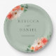 Assiettes En Carton Rustique Sage Green et Orange Fleur sauvage Mariag