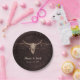 Crâne de vache à taureau rustique cowboy de l'ouest du pays mariage dîners assiettes de réception. texture marron personnalisé style de ferme favorise. Ancien antiquité vintage sauvage de l'ouest. Cool, tendance, design animal de ferme moderne. Customisez votre typographie. Copyright de l'image Marg Seregelyi Photography.