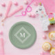 Assiettes En Carton Sage Moderne Vert Monogramme