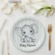 Assiettes En Carton Sage Vert Aquarelle Eléphant Baby shower neutre