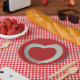 Assiettes En Carton Saint-Valentin rouge avec coeur 3D blanc centre