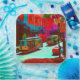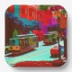 Graphique coloré d'une scène de rue à San Francisco avec téléphériques...
