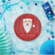 Illustration de Destei d'une tête de Père Noël à l'expression d'un visage heureux. La couleur arrière - plan est rouge avec un motif de points blancs. Il y a aussi le texte "Joyeuses fêtes !" ainsi qu'une zone de texte personnalisable pour le nom de l'événement.