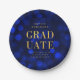 Assiettes En Carton Sapphire Blue Bokeh Lights Faux Gold Graduate