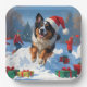 Illustration de vacances pleine de charme avec un chien gai jouant dans la neige, portant un chapeau de Père Noël et entouré de boîtes cadeaux colorées. Dans l'arrière - plan, les enfants construisent un bonhomme de neige à côté d'un sapin de Noël enneigé, créant un merveilleux pays hivernal. Parfait pour répandre la joie des fêtes et capturer la magie de Noël.