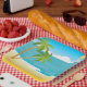 Vue pittoresque sur une plage de palmiers au soleil éclatant. Ce design semble vraiment efficace sur ces Plaques de Papier