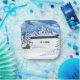 Une assiette avec une belle scène hivernale comprenant des montagnes enneigées, cabine rustique et des verdure enneigés. L'image et le texte peuvent être personnalisés. Oeuvre originale de W.B.