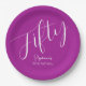 Assiettes En Carton Script simple moderne rose foncé 50e anniversaire