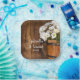 Personnalisez ces charmantes plaques de papier Mariage en bois et marguerites blanches avec les noms de la mariée et du marié et date à utiliser à votre douche nuptiale informelle mais élégante ou réception de mariage. Ces assiettes jetables de style ranch occidental chic rustique et chic sont ornées d'une photo florale d'un seau en bois rempli d'un bouquet de fleurs marguerites blanches avec un arrière - plan patiné en bois de grange brune.