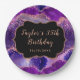 Assiettes En Carton Séquins violets foncés et roses Agate Anniversaire