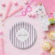 Ajoutez de la mode et du flair à votre style de fête avec ces plaques de papier peint à rayures peintes couleur violet et blanc cassé. Personnalisez ce design lavande mignon et élégant en ajoutant le nom et le monogramme initial de la jeune femme à la mode.