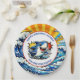 Boy's birthday party in a nautical or maritime theme paper plates. Blue, yellow, red shark pop art. Add child's name in the personalize area.