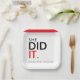 Celebrate her incredible achievement with this bold and stylish "She Did It" paper plate. Featuring a striking red dot and the graduation year, this design is perfect for any graduation party, from high school to college. The classic black and red typography makes a powerful statement, honoring all the hard work and dedication that led to this moment. Make her graduation celebration unforgettable with these eye-catching paper plates that truly say "She Did It!"