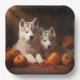 Assiettes En Carton Sibérie Husky Puppy Citrouille d'automne