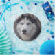 Cette peinture numérique représente un Husky sibérien debout sur la neige, sa fourrure brillant de reflets glacés tandis que le paysage hivernal s'étend sans fin derrière lui. Les yeux expressifs du chien attirent l’attention du spectateur.
