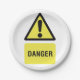 Un signe de danger jaune avec le mot et un point d'exclamation. Cette conception semble vraiment efficace sur cette plaque de papier