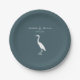 Assiettes En Carton silhouette héron blanc sur bleu turquoise foncé si