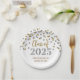 Classe graduation personnalisable de 2025 assiettes en or glamour et argent confetti motif et élégant texte de style lettré à la main.