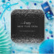 Silver Parties scintillant Nom Black Happy New Year 2026. Une touche de parties scintillant en faux argent glam est en haut et en bas sur le noir classique, et Happy est dans un script élégant. Personnalisez facilement le texte à vos propres détails.
