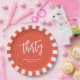 Il est temps de faire la fête pour fêter un 30ème anniversaire avec cette assiette de fête d'anniversaire moderne et audacieuse. Ce design simple et élégant est doté d'un arrière - plan orange vif aux accents manuscrits blancs mélangés à une police sans serif moderne. L'assiette est bordée d'un motif coordonné à rayures orange et blanche. Personnalisez le modèle de texte avec le nom et la date de votre invité d'honneur. Ces plaques sont disponibles en 9 pouces de diamètre et 7 pouces de diamètre. Montré ici dans le style 9 pouces.