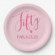 Un design moderne chic 50ème anniversaire, pour une fête prévue ou surprise cinquantième anniversaire. Les mots Fifty & FABULOUS! sont conçus à l'aide d'un mélange de script et de lettres de caractères, en jolis cramoisis, sur un arrière - plan rose luxueux. Cette combinaison ravira même les amateurs de rose les plus exigeants ! D'autres couleurs sont également disponibles. Inclure la coordination des fournitures de fête et des cadeaux pour une célébration amusante et fabuleuse du 50e anniversaire à retenir!