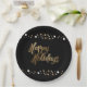 Moderne, simple noir avec or et blanc confetti Plaques de papier de Fête Fête Fête. Plaques de Noël pour vos fêtes de fin d'année. "Happy Holidays" dans un effet d'impression doré sur ces plaques en papier.