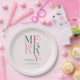 Assiettes En Carton Simplement coloré joyeux rose Noël