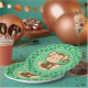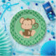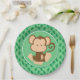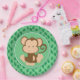 Ce plat de partie comporte un arrière - plan vert avec un motif de répétition de feuille de jungle. Un brun mignon de clipart de bébé et un singe bronzage se repose au centre du plat.