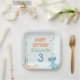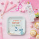 This charming birthday plate design features the lovable Slumberkins Hammerhead character set within a calm, ocean-inspired scene that feels playful, gentle, and perfectly kid-friendly. Soft pastel blues, warm peach accents, and soothing green tones create a balanced underwater look with sea plants, bubbles, fish, and starfish adding subtle detail around the edges. The centered birthday message and customizable name and age make the design feel personal while keeping the layout clean and easy to read. Ideal for toddler and young children’s celebrations, this design ties beautifully into an ocean or shark-themed birthday with a cozy, Slumberkins-inspired vibe that feels special without being overwhelming.