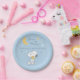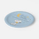 Celebrate the upcoming arrival with these sweet, customizable Peanuts Snoopy and Woodstock baby shower paper plates! Featuring a dreamy, celestial design, the plate showcases a sketch-style Snoopy lovingly embracing a tiny Woodstock. Set against a soft light blue background dotted with stars, the charming script reads "Over the Moon." This design allows for a line of custom text such as the honoree's name or date, making them perfect for serving cake or light snacks and adding a personal touch to your gender-neutral or baby boy shower celebration.