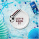 Faisons-le ! Plaques d'anniversaire de football avec Maroon et bandes noires et ballon de football.