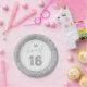 Décorez votre douce fête de 16 ans avec style avec ces élégantes plaques en faux argent de pouce. Ce design est composé d'une bordure de parties scintillant en faux argent et d'une typographie de script moderne qui dit "Sweet 16" avec accents de parties scintillant sur un coeur et le numéro "16". Je me suis amusé à créer ceci pour toi. J'espère que vous en profitez ! Conçu par l'artiste ©Susan Coffey.