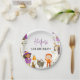 Ce joli design comporte une frontière peinte à la main ou des personnages d'Halloween amusants, il y a des enfants en costumes, chats noirs, chauves-souris, citrouilles souriants, fantômes, squelette dansant, araignées, ballons, étoiles, potions magiques, crâne aux yeux, bâton volant, maïs bonbon et plus ! Le jeu de couleurs est une combinaison classique d'Halloween : orange, violet, gris et noir. Une jolie plaque en papier Halloween pour correspondre à notre design "Costume Fille Halloween Fête Anniversaire". Parcourez la collection liée sur cette page pour trouver les objets correspondants ou visitez notre magasin pour plus de dessins de fête d'anniversaire d'Halloween.
