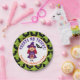 Fête d'Halloween pour les enfants en costume mignon. Typographie "Traite NO Tricks" avec Halloween détails violet, et orange. Et super mignonne petite sorcière et ses amis chauves-souris. Idéal pour vos assiettes en papier pour enfants Halloween. Facile à personnaliser le nom de l'enfant.