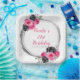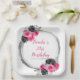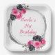 Belle assiette de fête d'anniversaire avec un cadre en faux parties scintillant rose et argent chaud avec des arrangements floraux. Parfait pour une fête d'anniversaire. Les mots peuvent être changés en fonction de vos propres détails ou exigences