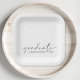Plaques de papier chic de fête de graduation avec "diplômé" dans un script moderne et le nom de la diplômée et l'année de classe dans la simple typographie.