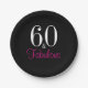 Assiettes En Carton Soixantième fête d'anniversaire rose noire