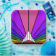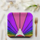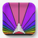 Un motif de style art déco classique en arc-en-ciel. Un motif emblématique du soleil se levant derrière un bâtiment en forme d'art déco stylisé. Un design simple mais élégant, fidèle à l'époque.