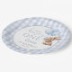 These charming 1st birthday party paper plates feature a cute bunny rabbit holding balloons and a blue gingham background. Designed by Thisisnotme©