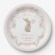 Designed with a soft, vintage watercolor style, this adorable paper plate features a whimsical watercolor bunny holding a pink balloon, delicate daisies and greenery accents, and elegant blush pink bows wrapped in flowing ribbon. The gentle pastel palette and whimsical layout offer a perfect touch of coquette girly elegance for your celebration.