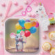 Mignonne souris grise avec bouquet de ballon d'anniversaire coloré