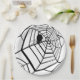 Une toile d'araignée noire sur un arrière - plan blanc orne la plaque ronde éffrayante Halloween.